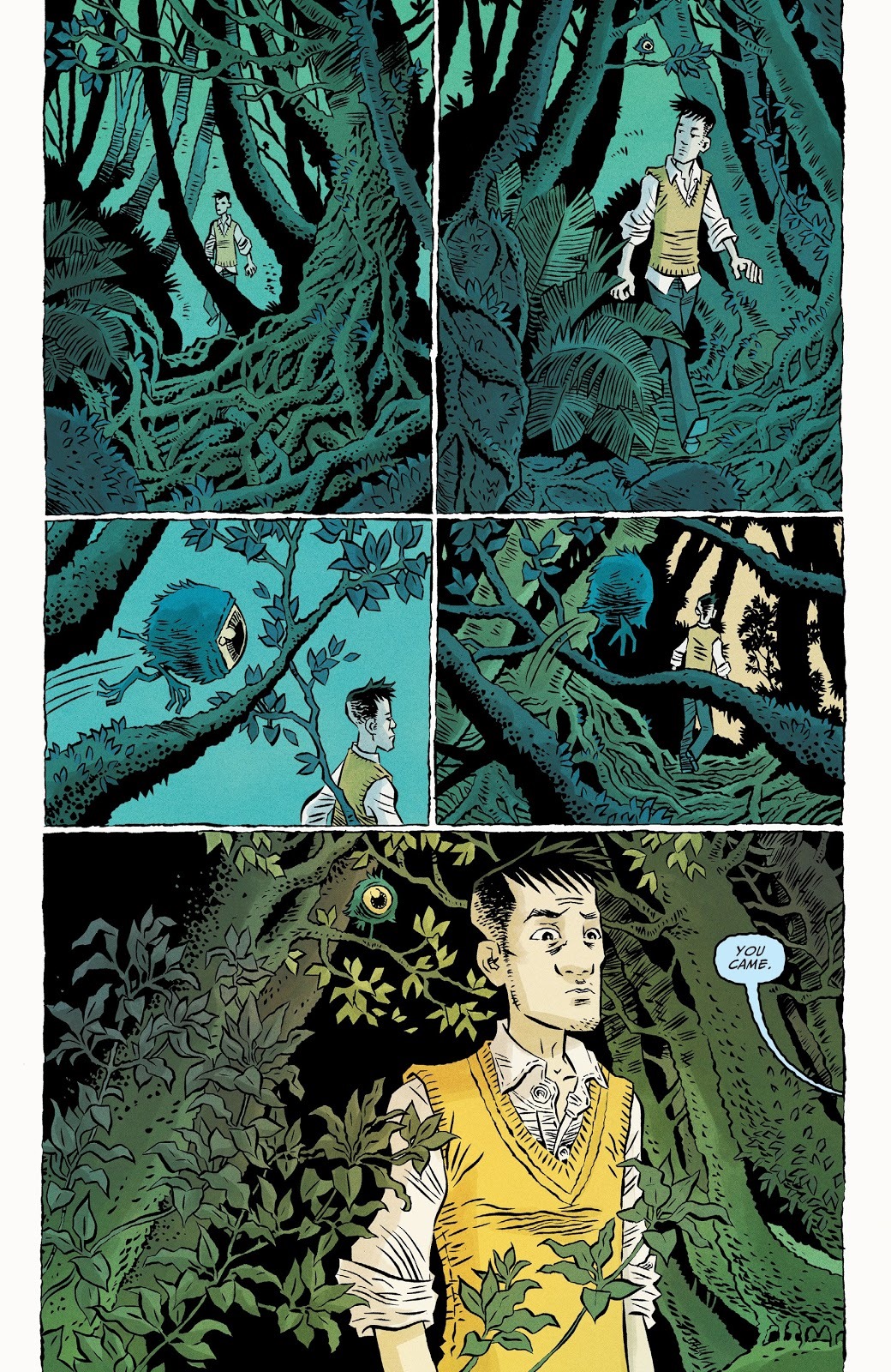 Minisérie „Ghost Tree“ vyniká hned v několika ohledech. Prvním z nich je příběh, jenž jsem detailně popsal o odstavec výš. Nejenom, že jeho zpracování je na vysoké úrovni, protože scénárista si dává záležet s každičkým detailem a postavou, která se v komiksu objeví, ale taktéž se snaží, aby zvraty, vztahy mezi jednotlivými aktéry a všelijaké dějové linky byly dostatečně uvěřitelné. Curnow chtěl všechny zmíněné prvky pojmout mnohem lidštěji a přirozeněji, díky čemuž komiks vyniká o poznání lépe. Ke každé postavě si proto vytvoříte silný vztah, jelikož autor klade důraz na jejich postupný vývoj a na emocionálně silné interakce, jež vás občas dokážou dost zasáhnout. A možná také proto si budete každého z hrdinů pamatovat, neboť nejde jenom o archetypální postavy bez špetky esenciálnosti a rozmanitosti, nýbrž o propracované lidské osobnosti, se kterými se dokážete dokonale ztotožnit. Nejde totiž o nadpřirozené bytosti, všemocné bohy, ani o postavy oplývající magickým darem. Jde zkrátka o normální lidi, kteří to v životě nemají vždycky jednoduché. A když už se přece jenom pracuje s něčím supernaturálním - většinou jde o duchy - nepůsobí to nuceně, ani přehnaně kýčovitě. Je to naopak velmi přirozené a osobité.
