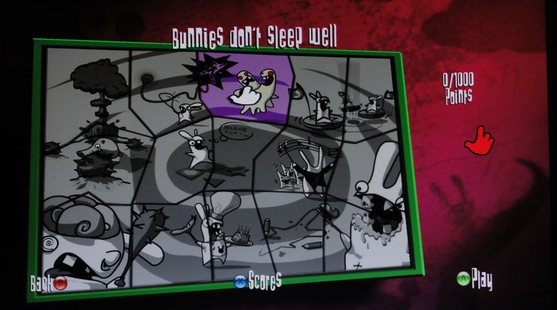 V režimu story hrajete sami za sebe, vejdete do arény a Vašim úkolem je vždy porazit mazané králíky, kteří Vás budou provázet v každé ze série miniher. Hra má několik desítek mini her v délce cca 5-10 minut, tady ovšem záleží dále na Vaší zručnosti a chytrosti, takže na hře určitě nahrajete dlouhé hodiny hraní, jelikož čím dál se poté dostanete, tím těžší jsou jednotlivá kola s novou sérií mini her. Začínáte vstupem do arény, kde Vás přivítá hlasité pokřikování mazaných králíků. Poté máte za úkol splnit minimálně tři klasická kola a poté kolo v hlavní bráně, jinak Vás hra dále nepustí. Pokud splníte všechny čtyři a hlavní kolo v bráně, poté se Vám odemykají různé nové songy, vzpomínky a věci. Poté jste vhozeni jako by do své cely, odkud se snažíte dostat právě pomocí splnění všech kol. V této cele si můžete měnit právě Vámi získané songy, oblečení atd. Příšera, která Vás hlídá je velice vtipná, poté s ní budete také soupeřit, ale to se nechte překvapit. Při hře se nejednou zasmějete, ale naopak i zapojíte své mozkové závity společně se zavařeným ovladačem, občas Vás budou z rychlého používání tlačítek bolet ruce.