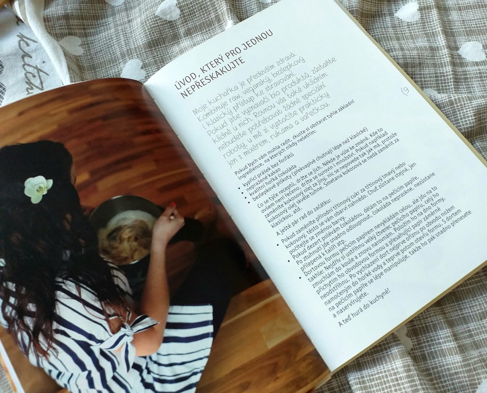 Kuchařka je vcelku útlá v měkké vazbě, ale není to klasický měkoučký paperback, je hodně tuhá, což je dobře. Obsahuje na padesát receptů, doplněných krásnými fotografiemi. Kombinuje raw, veganský, bezlepkový i klasický přístup. Autorka se nevzdala cukru, nýbrž ho nahrazuje přírodními sladidly. Používá zdravější druhy mouky.