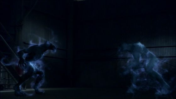Kultovní hororová postava je zde prezentována formou jakého přízraku, kdy se člověk z lidské podoby promění v bílý (nebo černý) oblak mlhy, který se dokáže protáhnout skrze klíčovou dírku a poté se zformuje v matnou podobu vlkodlaka. Samotné efekty vypadají hodně amatérsky a musím se přiznat, že při soubojích těchto tvorů jsem měl docela problémy rozeznat kdo je kdo. I když na druhou stranu nám to tvůrci lehce ulehčili tím, že ten co dostával na frak byl většinou ten hodný. Jen jedinkrát změnili autoři strategii a na krátký okamžik nám ukázali krátkou proměnu Vicovi tváře a zase tak špatně to nevypadalo. Kdyby šli po celou dobu filmu tímhle směrem, tak z toho nemusela být taková fraška. Krvavých scén se tu objeví hned několik, ale o žádné lázni či pastvě pro oči nemůže být ani řeč. Většinou se totiž objeví jen cákanec krve a teprve po dalším střihu má divák šanci omrknout zakrvácenou postavu na zemi.