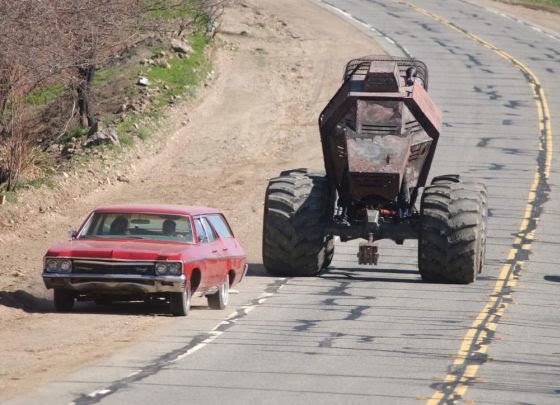 Adam nasedne do svého auta a vyráží naposledy říct své ex, že jí stále miluje a ať si nebere jiného. Během cesty zjistí, že se na zadním sedadle celou dobu schovává jeho přítel (exot) Harley. Oba si během jízdy začnou lézt trochu na nervy, ale na společné taškařice jsou zvyklí. Vše se však náhle změní poté, co na ně začne dorážet obří monster truck, který se je pokusí vytlačit ze silnice. Po této mrzuté příhodě si potřebují odskočit, ale auto se objeví rovněž na parkovišti. Zatímco Adam vykonává potřebu na špinavých záchodcích, Harley využije nepřítomnosti šíleného řidiče a vymočí se do kabiny. Tím mají být účty srovnány, jenže naopak všechno teprve začne. Po cestě vezmou pěknou stopařku Sarah, ale vzápětí se ve zpětném zrcátku opět objeví truck. Nejde totiž jen o obyčejného šílence, ale znetvořené monstrum, které má strašně rádo lidské končetiny a své vyhlédnuté oběti se jen tak nevzdá…