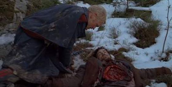 Anglickou režisérku Antonii Bird jsem do dnešního dne vůbec neznal. Musím však říct, že tento film se jí velice povedl a získala si mou přízeň. Většina britských filmů je totální hovadina, ale zde jsem se setkal s obrovským překvapením. Jde o směsici westernu a hororu, kterých je jako šafránu. Hlavně těch dobrých. Začátek filmu nás seznámil s hlavním hrdinou Boydem, který je v hloubi duše posera a díky šťastné náhodě a jeho touze o přežití dokázal zvrátit průběh bitvy. Jelikož ho tížilo svědomí, tak se přiznal a je převelen do zapadlé pevnosti, která je obývaná hrstkou vojáků. Zdejší posádka je tvořena všelijakými individui, která zde našla možnost jak se zašít. Jejich jedinou náplní je jídlo a alkohol. Boyd se zde dočká celkem milého přivítání a vypadá to, že se nic nebude dít. Tato pasáž je ještě celkem nudná a nic nenasvědčovalo tomu, že by mohl být zbytek filmu zajímavý. Doprovázela nás pomalá country hudba, která se mi celkem líbila. Příchodem Colqhouna se film doopravdy rozjel. Nenápadný cizinec nám vypráví svůj děsivý příběh, ve kterém máme možnost sledovat zvrácenost osadníků a jejich proměnu v šílence toužící po jídle. Film se ale opravdu rozjede do vyšších otáček až příchodem vojáků z pevnosti k jeskyni. Probíhající masakr doprovází opravdu šílená hudba, která se snad nedá ani slovy popsat. Nevím jestli mě víc mrazilo právě z ní, nebo z toho, co se odehrávalo na obrazovce. Proměna Colqhouna sice nepatří do kategorie nezapomenutelných, ale z trosky se stal šílenec, v jehož očích jste viděli chuť zabíjet a pohrát si se zbytkem vojáků.