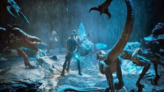 Atmosféra (především ta ponurá), tak nastává teprve s příchodem deště a probuzením vražedných monster. Opět ta obehraná písnička se tmou však tady moc dobře nezní, protože tomu chybí větší dávka napětí. Tím nechci říct, že by tu nebylo vůbec, ale přišlo mi to celé takové fádní. Kupříkladu jako úplný závěr filmu, kdy opět čest vyhraje nad nevraživostí a pomstou. Jak to tak vypadá, nechal si režisér otevřené vrátka pro další díl. Jen nechápu to, že když už měl na jednom place Vin Diesela a wrestlera Dave Bautistu, tak neudělal pořádný fight. Trojka určitě měla potenciál zapsat se rovněž nesmazatelně do paměti Riddickova fanklubu, ale spíš si myslím, že se tak u mnohých nestalo.
