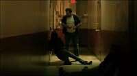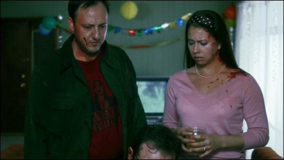 Druhá půlka se totiž jako mávnutím proutku promění v jakousi černou komedii a kvalita jde rapidně směrem dolů. Ta tam jsou napětí a mrazivá atmosféra ze začátku filmu. Zabíjení se zde sice dočkáme opět v docela hojném počtu, ale jejich ztvárnění je hodně slabé a mnohdy vlastně ani toho nic neuvidíme, protože si kamera zabírá úplně něco jiného, než by bylo v dané chvíli potřeba. Rádoby morbidní humor rovněž nepřináší kýžené ovoce, a tak máme šanci sledovat a hlavně poslouchat jen docela stupidní dialogy a trapné chování postav. V tuto chvíli u mě začal film ztrácet všechny předtím pracně vybojované body a dostavil se tolik nenáviděný pocit nudy. Tu jen sem tam přerušila nějaká zajímavější scénka nebo situace, ale těch tu bylo jako šafránu. Jediným přínosem byla nová postava domovníka, kterou jsem si docela rychle oblíbil. Proto jsem se nemohl dočkat třetí části, která to snad měla opět trochu povznést k výšinám, ale jak se ukázalo byla to jen planá naděje. I když šlo rozhodně o zajímavější pasáž.