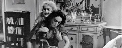 Především po psychické stránce to byla šupa jako blázen. No ona ta stařena v dětských šatičkách taky magor byla, ale právě tohle nevyrovnané rozpoložení patří ke zlatému hřebu večera. Koho by taky bavilo, starat se o nenáviděnou ségru na vozíku, která má navíc na kontě slušný balík o který jí chcete odlehčit. Která má v pokoji nainstalovaný bzučák a furt otravuje, že má hlad, kterou jste se už jednou pokusili zabít. To samé však platí i pro invalidní Blanche, která v dětství musela žít ve stínu své úspěšnější sestry, dívat se na to, jak jí upřednostňuje otec a když už se konečně stane oblíbenou i vy, najede na vás auto a páteř je v hajzlu. No nenasralo by vás to?