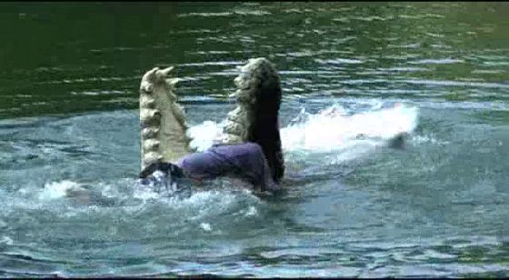 Určitě spousta z vás má ráda nejrůznější zvířecí dokumenty, které můžete vidět v televizi a spousta z nich se týká i samotných krokodýlů. Tak věřte, že větší polovina záběrů, které v tomto filmu uvidíte a na nichž figuruje zabiják s tlamou plnou velkých zubů pochází právě z takových dokumentů. Za celý film uvidíte hned několik druhů, a to poznají i ti, jenž rozhodně nepatří mezi odborníky. Tvůrci si zřejmě mysleli, že jsou diváci úplně blbí a hlavně slepí. Když potom přišly na řadu scény s krokodýlem umělým, byla to doslova katastrofa. Gumovost a doslova trapnost z nich srčela do všech stran. Něco tak odporného jsem už dlouho neviděl. Podobně ujeté mi přišlo i krokodýlovo chování, které se zcela vymykalo přírodě. Na to, že si krokodýlové ve filmech dělají zásoby ve svých jeskyních či jiných doupatech jsme si již zvykli, ale tenhle pašák většinu svých obětí jen roztrhal na cucky a kusy těl nechal povalovat kde se dalo. Bylo toho samozřejmě mnohem víc, ale to bych vykecal víc než bych měl.