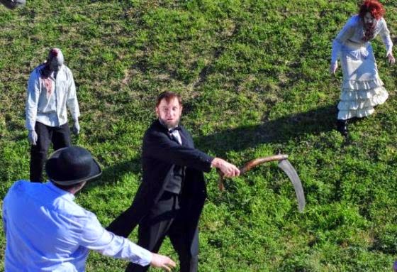 Když se v témže roce natočil film Abraham Lincoln: Vampire Hunter, bylo jen otázkou času, kdy se společnost The Asylum (jak už bývá poslední dobou u ní zvykem), rozhodne natočit svou vlastní verzi mnohými očekávaného filmu a vytřískat z toho nějaké peníze. Do režisérského křesla usedl Richard Schenkman, který není žádným zelenáčem a tak jsem si přece jenom sliboval alespoň trochu důstojnou podívanou. Leč opět jsem velmi brzy zjistil, že to bylo jen mé „zbožné“ přání. Nechápu, proč se tvůrci nízkorozpočtových zombie filmů nezajdou podívat na nějaký „zombie festival“ a neosloví tamní účastníky (většina z nich má docela obstojné masky). Určitě by to vypadalo mnohem lépe a ani by za to moc neutratili.