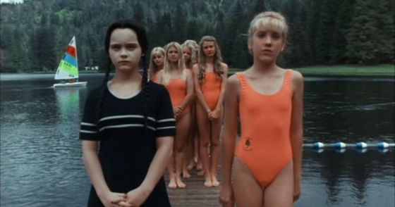 Mnohem lepší je odjezd Wednesday a Pugsleyho na letní tábor, který vede šílená manželská dvojice Grangerových. Jedná se o docela netradiční tábor, kdy i samotní vedoucí dělají obrovské rozdíly mezi jednotlivými dětmi, ale přesto se s nimi pokoušejí hrát nejrůznější společenské hry. Bohužel se jim moc nedaří udržet mladé Addamsovic ratolesti na uzdě a především bezcitná Wednesday je zde hlavní atrakcí. To, že tato dívenka nezná slitovaní a je zcela bezcitná, jsme se měli možnost přesvědčit již několikrát, ale zde se dočkáme totální destrukce morbidní zábavy a především špičkového výkonu Christiny Ricci, která zde dostala mnohem více prostoru a opět dokázala, že byla vynikající herečkou již v útlém věku. Je však nutno podotknout, že i tato dívenka zůstane docela dost poznamenána svým pobytem v táboře. Ono se ani není moc čemu divit, když nějaký čas trávíte mezi dementními vedoucími i namachrovanými dětmi. Bylo potřeba jim utnout tipec a scénář umožnil divákům prožít několik velice peprných chvilek.