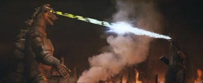 Dokonce i samotná Mekagojira se tvůrcům vyvedla. Vyzbrojena pěkným arsenálem zbraní, nelítostná a téměř nepřemožitelná- konečně pořádný nepřítel pro Gojiru. Ta už potřebovala hodně dlouho dostat pořádně na prdel a tak se i stalo. Už dlouho se nestalo, abych v této sérii fandil jejímu soupeři víc než mému milovanému monstru (hlavně díky prvnímu dílu), ale poté co si robot parádně a hlavně brutálně poradil s Anguirusem jsem prostě musel. Zarytí fandové jistě ocení množství krve, které se tu objeví. Celý snímek na mne navíc působil příjemně ponurým nádechem, ve kterém nechybělo ani potřebné napětí. K tomu dopomohl i hudební doprovod, který konečně za něco stál.