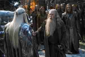 Bohužel ne vše jde podle plánu, Sauronova vojska se přibližují a musí se taky dořešit několik vedlejších linií. Nejen příběh zamilované Elfky s nejvíce sexy trpaslíkem, ale celý příběh se má dovršit ke zdárnému konci, kdy všichni dobří (až na výjimky) přežijí, někdo se obětuje a posledními záběry se Bilbo Pytlík vrací do svého rodného Kraje.
