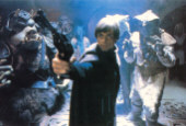 THE RETURN OF THE JEDI, USA 1983. Režie: Richard Marquand. Scénář: George Lucas, Lawrence Kasdan. Kamera: Alan Hume. Hrají: Mark Hamill, Harrison Ford, Carrie Fisherová, Alec Guinness, Billy Dee Williams ad.